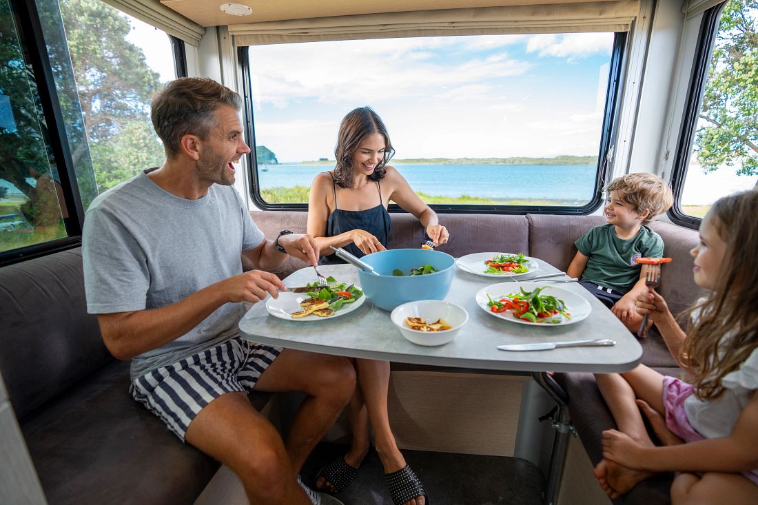 | Extra | Achteruitrijcamera, zonnepaneel, buiten kookplaat (alleen in Australië), horren (Australië), draaibare stoelen in de cabine |
